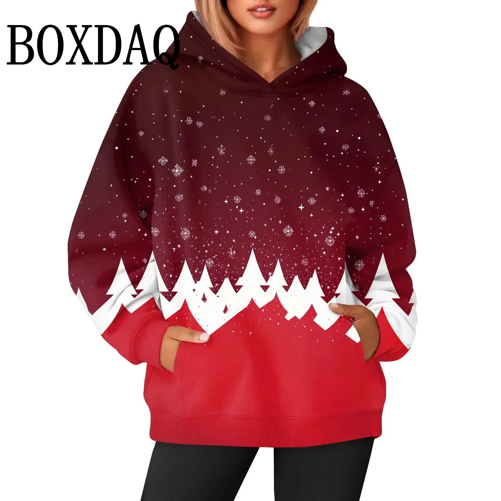 Women’s Christmas Sweatshirt – 3D Santa Claus & Christmas Tree Pullover